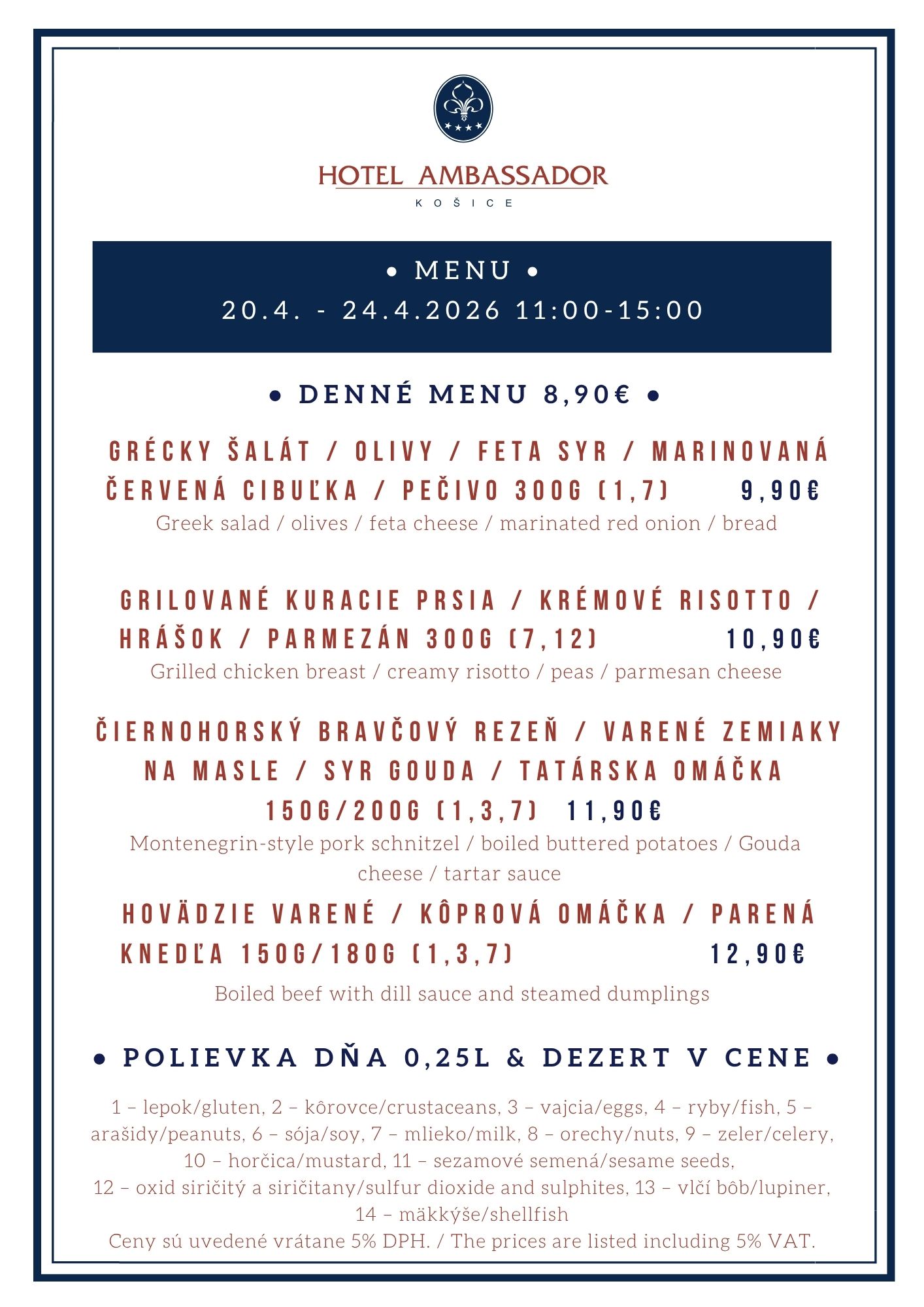 TÝŽDENNÉ MENU